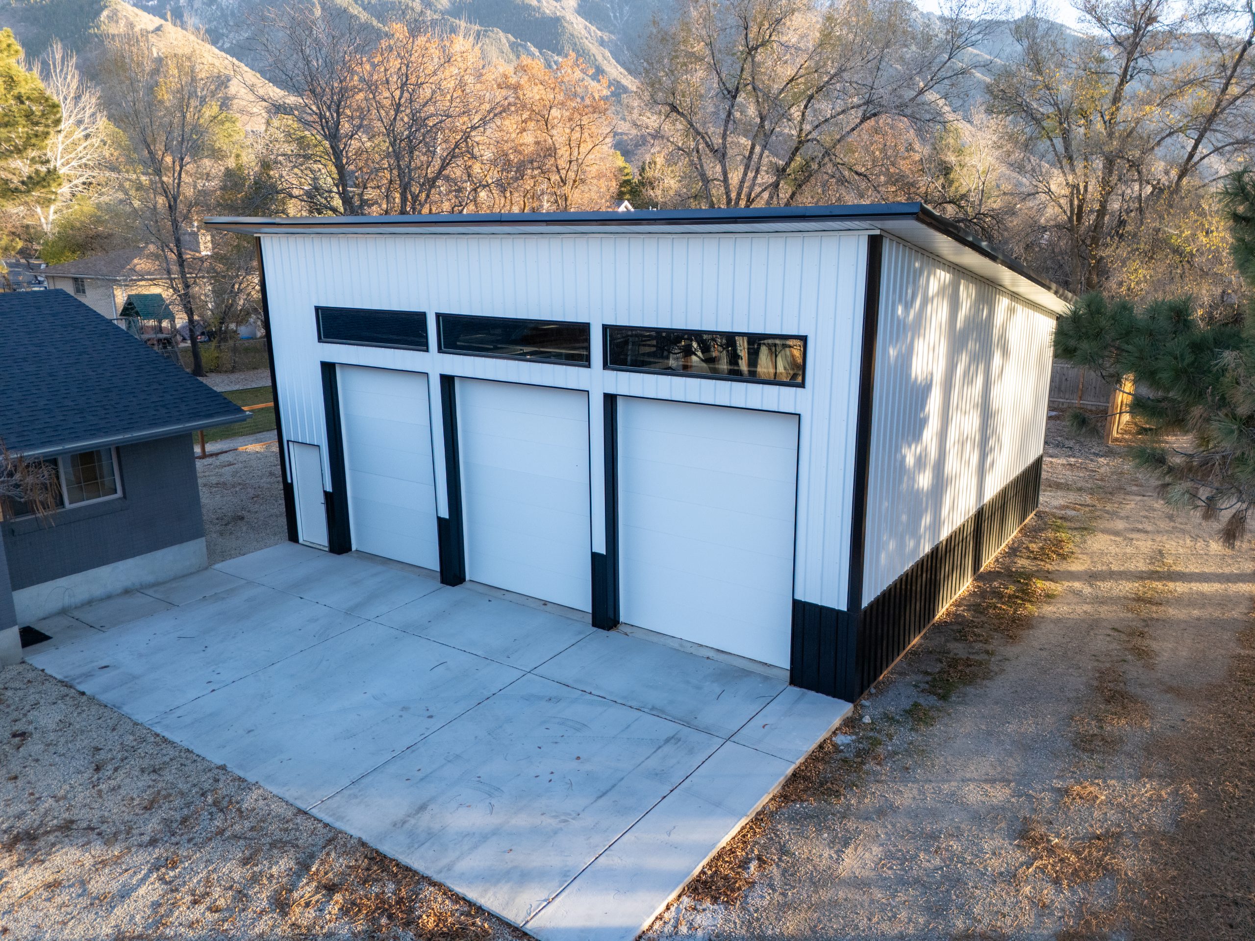 Jon’s Single-Slope Garage Exterior Sizes: 150 × 150 / 300 × 225 / 768 × 576 / 960 × 720 / 1,536 × 1,152 / 2,048 × 1,536 / 480 × 300 / 720 × 500 / 300 × 300 / 400 × 400 / 600 × 600 / 2,560 × 1,920 Front exterior view of Jon’s single-slope garage showcasing the clean roofline, white metal siding, and black wainscot accents. Gallery Image Info Dimensions 2,560 × 1,920 Name DJI_20251125161848_0003_D-scaled.jpg Mime Type image/jpeg Type JPG Size 1.15 MB